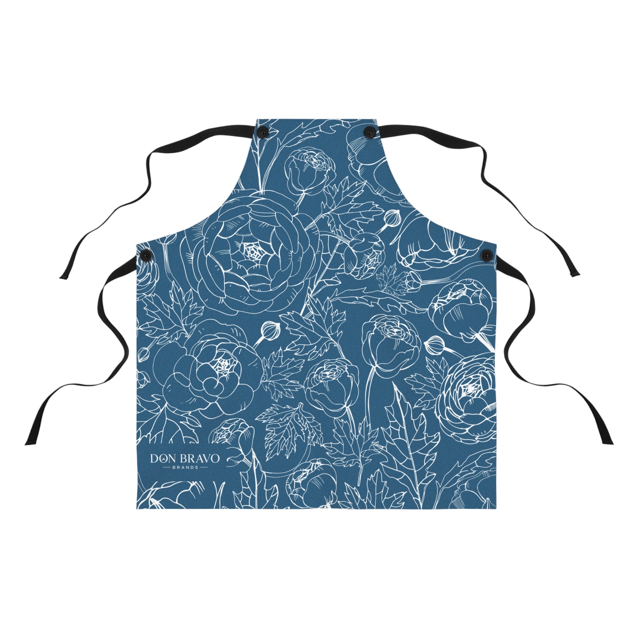 The Don Bravo Midnight Bloom Apron brings floral elegance to the front lines of your kitchen, studio, or grill. With a rich navy base, white botanical linework, and a discreet Don Bravo logo, it’s less about mess protection and more about power presentation.